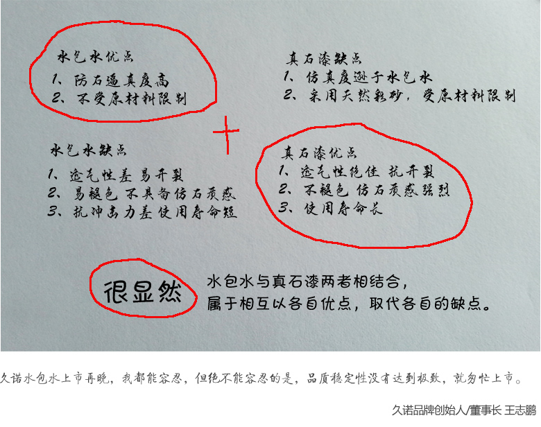 “其它产品只有结合仿石漆,才能达到最佳的仿石效果”这是久诺2009年投入其它产品的研发思路,今天已成为业内人士公认的事实。如下图所示: