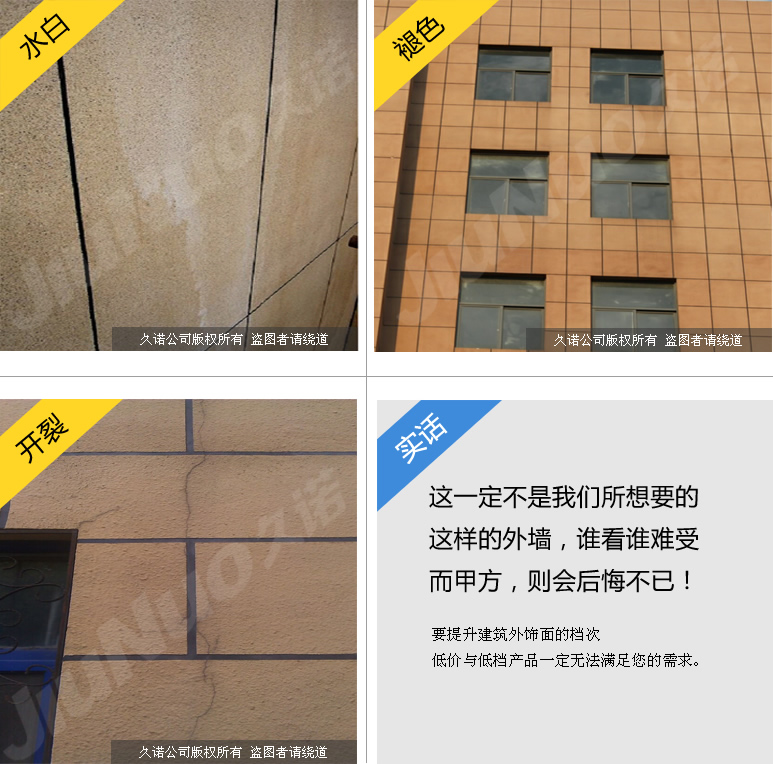 作为国内仿石漆的领军品牌,从骨子里极为排斥低价、低端,捍卫行业、提升行业价值,是久诺必须承担的责任。为此,久诺必须告诉您一个事实与一个真相。