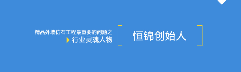 正因为整个行业把外墙涂装看成粗活,才需要恒锦,正因为市场上难以看到外墙精品工程,我才创立恒锦。恒锦品牌战略纲领就一个词:引领!并立志成为中国外饰面精品仿石系统及解决方案的典范企业。我认为未来行业不需要新品牌,只需要引领整个行业向更高层次发展的新理念。